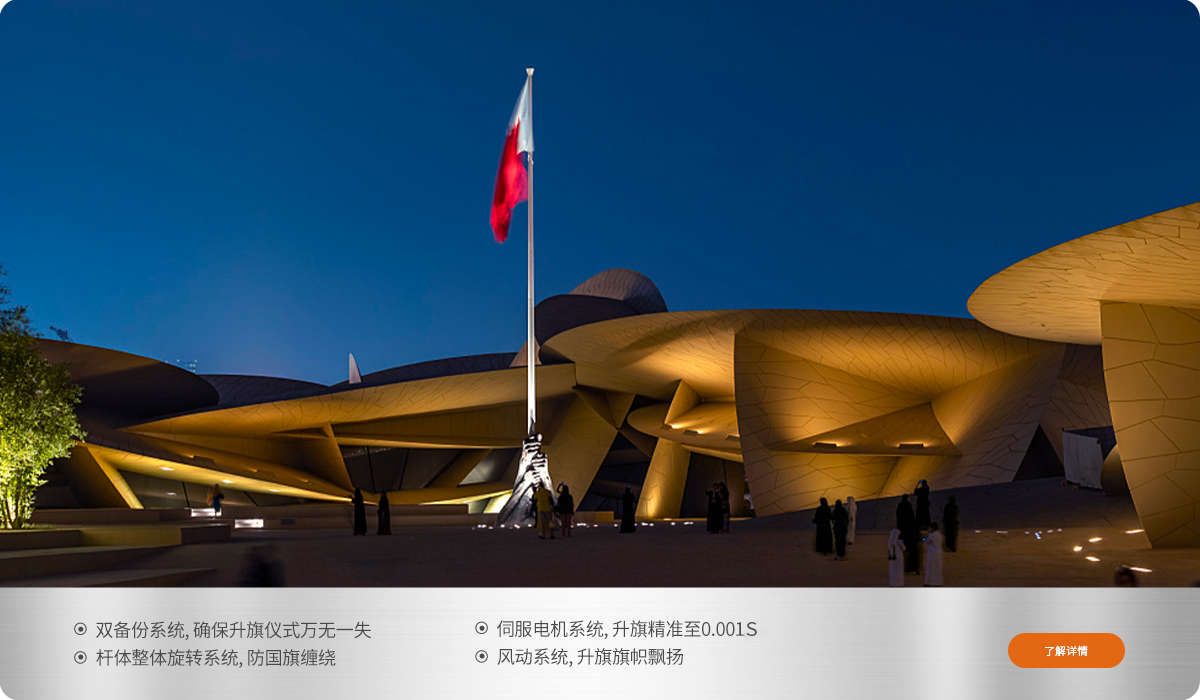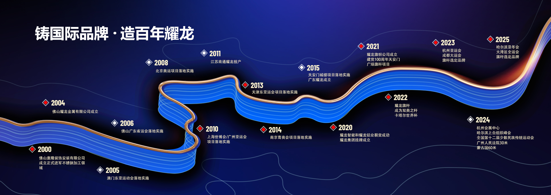 主營(yíng)旗桿、不銹鋼旗桿、鋁合金旗桿、頒獎(jiǎng)旗桿等旗桿廠家,公司所生產(chǎn)的旗桿產(chǎn)品已經(jīng)20年,形成良好的市場(chǎng)口碑。國(guó)家以及政府地區(qū)的大型項(xiàng)目形象工程均指定使用耀龍旗桿。已成功成為天安門(mén)城樓、北京奧運(yùn)會(huì)、北京冬奧會(huì)、國(guó)家博物館、福建海峽國(guó)際會(huì)展中心、上海世博會(huì)、亞洲運(yùn)動(dòng)會(huì)、深圳大運(yùn)會(huì)、南京青奧會(huì)、廣州奧體中心、汕頭亞青會(huì)、廣州國(guó)際會(huì)展中心、卡塔爾世界杯廣場(chǎng)、福建廈門(mén)新會(huì)展中心的旗桿選定升旗品牌,為國(guó)家運(yùn)動(dòng)賽事的順利開(kāi)展作出了巨大貢獻(xiàn)。